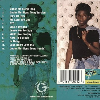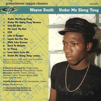 CD— out of stockGreensleeves WCD 91Reggae / A43Wayne Smith: Under Me Sleng TengEssential 80’s digital Dancehall 01 Under Me Sleng Teng 02 Jammy’s Studio Band: Under Me Sleng Teng Version 03 Icky All Over 04 My Lord My God 05 E20 06 Like A Dragon 07 Leave Her For You 08 Walk Like Granny 09 Hard To Believe 10 In Thing 11 Love Don’t Love Me 12 Under Me Sleng Teng (Remix)