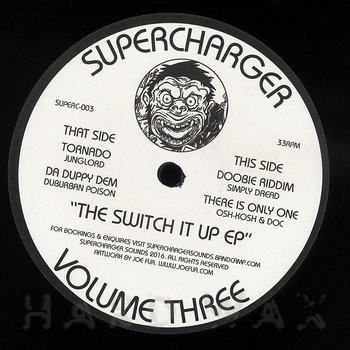 EP— out of stockSupercharger 003Label CatalogVarious Artists: Supercharger Volume Three - The Switch It Up EPBlinding Jungle-early-1990s-style revivalism A1 Junglord: Tornado A2 Duburban Poison: Da Duppy Dem B1 Simply Dread: Doobie Riddim B2 Osk-Kosh & Doc: There Is Only One