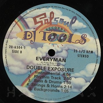 12"— out of stockSalsoul DJ Tools 6504DiscoDouble Exposure: EverymanReissue of a disco classic A1 Original Mix A2 Acapella B1 Instrumental B2 Rhythm Track B3 Bass & Drums B4 Strings & Horns B5 Backgrounds