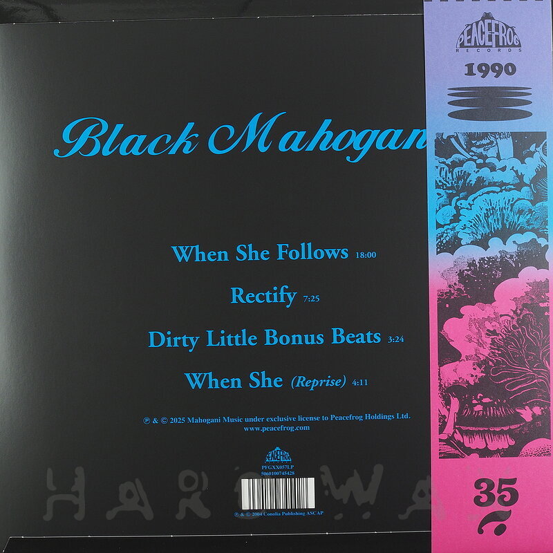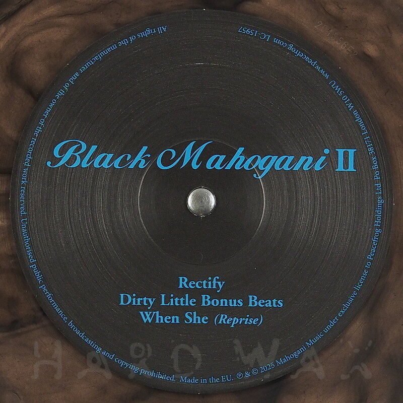 LP—LP € 48Peacefrog PFG 057Label CatalogMoodymann: Black Mahogani II2025 repress of killer Moodymann release w/ band & accoustic jazz excursions A1 When She Follows (Original 18 Minute Version) B1 Rectify B2 Dirty Little Bonus Beats B3 When She (Reprise)