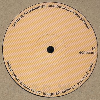 12"— out of stockEchocord 010Label CatalogMikkel Metal: Sorano EPAmbientish dubby tech house A1 Image A2 Larkin B1 Kuma B2 Clora