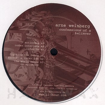 12"— out of stock11th Hour Recordings 003Label CatalogArne Weinberg: Confessions Of A BelieverFine 6 track EP w/ warm + organic classic Detroit inspired techno A1 Antiochia A2 Codex Interlude A3 Lifetime B1 Fighting The Demon B2 Sacrifice Interlude B3 The World Keeps On Spinning