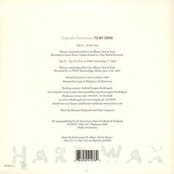 7"— out of stockPlayhouse 107Label CatalogCaptain Comatose: To My SongDisco/punk/dance rock tracks w/ male vox A1 To My Song B1 Say CC (Live At WMF Sommerlager 7" Edit)