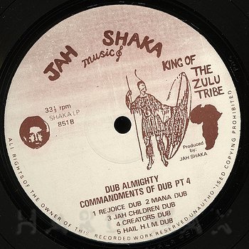 LP— out of stockJah Shaka 851Reggae / A07Jah Shaka: Commandments Of Dub Chapter 4"Dub Almighty", classic Shaka LP A1 Almighty Dub A2 Glorious Dub A3 Sure Dub A4 Holy Dub A5 Chant Dub B1 Rejoice Dub B2 Mana Dub B3 Jah Children Dub B4 Creators Dub B5 Hail HIM Dub