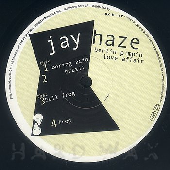 12"— out of stockMusik Krause 013Label CatalogJay Haze: Berlin Pimpin EPMinimalist tech house A1 Boring Acid A2 Brazil B1 Bull Frog B2 Frog