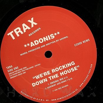 12"— out of stockTrax TXR 08Label CatalogAdonis: We’re Rocking Down The HouseHigh quality 2006 european reissue of classic Chicago tracks A1 We’re Rocking Down The House A2 We’re Rocking Down The House (Basement Jaxx Remix) B1 We’re Rocking Down The House (Instrumental Mix) B2 We’re Rocking Down The House (Basement Jaxx Remix)