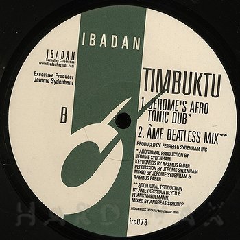 Do 12"— out of stockIbadan 078Label CatalogDennis Ferrer & Jerome Sydenham: Timbuktu RemixesAme remixes & outstanding Ferrer & Sydeham remixes A1 Ame Outro Mix B1 Jerome’s Afro Tonic Dub B2 Ame Beatless Mix C1 Ame Main Mix D1 Ame Original Mix D2 The Sydenham & Feber Vibe Out
