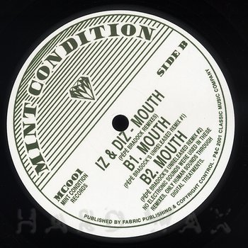 12"— out of stockMint Condition 001Label CatalogIz & Diz: Mouth - Unreleased Pépé Bradock MixHouse cuts in three killer DJ tool versions by the one & only Pépé Bradock A1 Mouth (Brad Peep’s Remix For Friends) B1 Mouth (Pépé Bradock’s Unreleased Remix 1) B2 Mouth (Pépé Bradock’s Unreleased Remix 2)