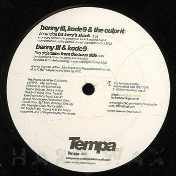 12"— out of stockTempa 007Label CatalogBenny Ill, Kode 9 & The Culprit: Fat Larry’s SkankHard to find 2002 release A1 Fat Larry’s Skank B1 Benny Ill & Kode 9: Tale Frome The Bass Side