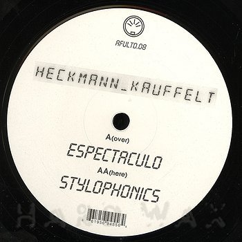 12"— out of stockAFU Ltd. 008Label CatalogHeckmann & Kauffelt: EspectaculoKnarz bassline driving techno A1 Espectaculo B1 Stylophonics