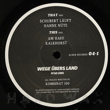 12"— out of stockAcker 004Label CatalogKombinat 100: Wege Übers Land - Pfad EinsTechno rave & neo trance flavored club tracks A1 Schubert Läuft A2 Hanne Nüte B1 Am Haff B2 Kalkhorst