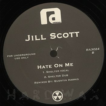 12"— out of stockRestricted Access 3024Label CatalogJill Scott: Hate On MeClassic DJ tool deep house w/ female vox A1 Hate On Me (Shelter Vocal) B1 Hate On Me (Shelter Dub)