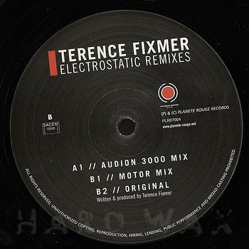 12"— out of stockPlanete Rouge 004Label CatalogTerence Fixmer: Electrostatic RemixesFeat. minimalist Audion remix A1 Electrostatic (Audion 3000 Remix) B1 Electrostatic (Motor Remix) B2 Electrostatic (Remastered)
