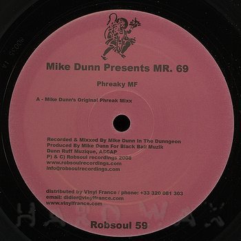 12"— out of stockRobsoul 059Label CatalogMike Dunn Presents: Mr. 69: Phreaky MFOld school sounding house A1 Phreaky MF (Mike Dunn's Original Phreak Mixx) B1 Phreaky MF (Mike Dunn's Black Ball Mixx)
