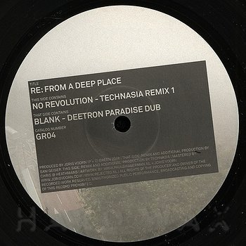 12"— out of stockGreen 004Label CatalogJoris Voorn: From A Deep PlaceHouse/techno rmxs. by Deetron & Technasia A1 Blank (Deetron Paradise Dub) B1 No Revolution (Technasia Remix)