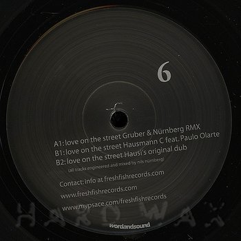 12"— out of stockFresh Fish 006Label CatalogVarious Artists: Love On The StreetDeeper house A1 Hausmann C feat. Paulo Olarte: Love On The Street (Gruber & Nürnberg Remix) B1 Hausmann C feat. Paulo Olarte: Love On The Street B2 Hausmann C feat. Paulo Olarte: Love On The Street (Hausi’s Original Dub)
