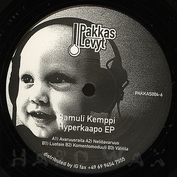 12"— out of stockPakkas Levyt 004Label CatalogSamuli Kemppi: Hyperkaapo EPSpaced out & acidic crafty techno cuts A1 Avaruusraita A2 Neliöavaruus B1 Luotain B2 Komentomoduuli B3 Välitila