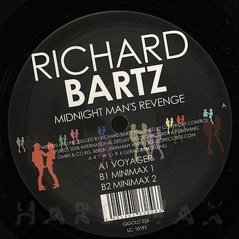 12"— out of stockGigolo 226Label CatalogRichard Bartz: Midnight Man’s RevengeMinimalist club techno A1 Voyager B1 Minimax 1 B2 Minimax 2
