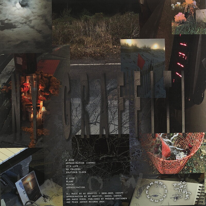 LP— out of stockPeace Anthem 004Label CatalogNY Graffiti: BurdenSlowed down, atmospheric leftfield Downtempo / Bass cinematics A1 Approximation (Intro) A2 It's Life A3 98 Prayers A4 Zolpidem Clock B1 Blame B2 Reach B3 Approximation