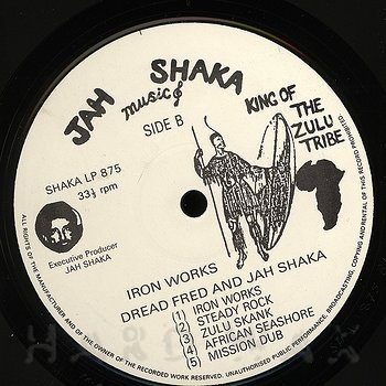 LP— out of stockJah Shaka 875Reggae / A07Dread And Fred: Iron WorksVery Classic Shaka LP, blueprint of the UK steppers style A1 Mighty Sounds A2 High Priest A3 African Dawn A4 Warrior Stance A5 Spirit 2000 B1 Ironworks B2 Steady Rock B3 Zulu Skank B4 African Seashore B5 Mission Dub