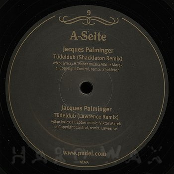 12"— out of stockPudelprodukte 009Label CatalogJacques Palminger: TüdeldubFreestyling remix EP w/ superb Shackleton contribution A1 Tüdeldub (Shackleton Remix) A2 Tüdeldub (Lawrence Remix) B1 Tüdeldub (Hey O Hansen Remix) B2 Tüdeldub (Peter Presto Remix)
