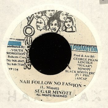 7"— out of stockYouth PromotionReggae / A32Sugar Minott: Nah Follow No FashionClassic adaptation of the "Queen Majesty" riddim, Tenor Saw on B, uncredited A1 Nah Follow No Fashion B1 Roll Call