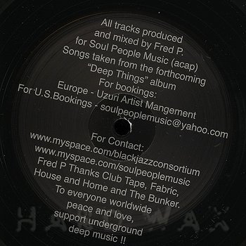 12"— out of stockSoul People Music 019Label CatalogBlack Jazz Consortium: Deep Things E.P.Classic Detroit sounding house tracks A1 Build It A2 Believe B1 Blacklight B2 Far Away