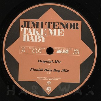12"— out of stockDecks Classics 010Label CatalogJimi Tenor: Take Me BabyValuable reissue of JT’s super classic A1 Take Me Baby (Original Mix) A2 Take Me Baby (Finnish Bass Boy Mix) B1 Take Me Baby (Vega Mix) B2 Take Me Baby (Slappers, Organ & RX70 Chorus Mix)
