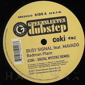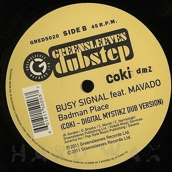 12"— out of stockGreensleeves GRED 5020Reggae / C1Busy Signal: Badman Place (feat. Mavado - Coki - Digital Mytikz Remix)Coki Mystikz remix of a hardcore dancehall badboy, with dub on B A1 Badman Place (feat. Mavado - Coki - Digital Mytikz Remix) B1 Badman Place (feat. Mavado - Coki - Digital Mytikz Dub Version)