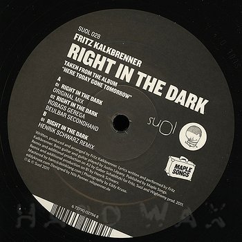 12"— out of stockSoul 028Label CatalogFritz Kalkbrenner: Right In The Dark’Schlager’-dance-pop w/ tech house mixes by Robag Wruhme & Henrik Schwarz A1 Right In The Dark (Original) A2 Right In The Dark (Robags Gerega Beulbar Secondhand) B1 Right In The Dark (Henrik Schwarz Remix)
