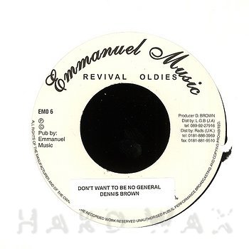 7"— out of stockEmmanuel MusicReggae / A30Dennis Brown: Don’t Want To Be No GeneralAlltime favorite Dennis Brown anthem A1 Don’t Want To Be No General B1 Version