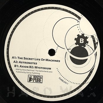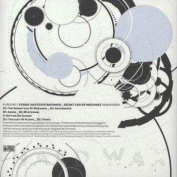 Do EP— out of stock100% Pure LP 011Label CatalogSterac: Secret Life Of Machines RemasteredSteve Rachmad prod. classic Techno reissued A1 The Secret Life Of Machines A2 Astronotes B1 Axion B2 Mysterium C1 Sitting On Clouds D1 The Lost Of A Love D2 Thera