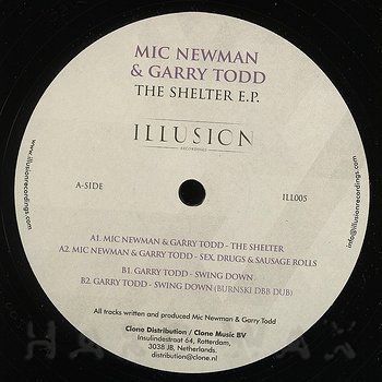 12"— out of stockIllusion 005Label CatalogMic Newman & Gary Todd: The Shelter EPSwinging early 90s NY House inspired tracks A1 The Shelter A2 Sex, Drugs & Sausage Rolls B1 Garry Todd: Swing Down B2 Garry Todd: Swing down (Burnski DBB Dub)