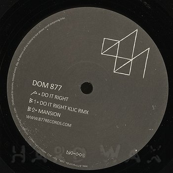 12"— out of stock877 005Label CatalogDom 877: Do It RightEffective, big room UK Tech House A1 Do It Right B1 Do It Right (Klic Remix) B2 Mansion