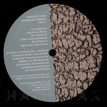 12"— out of stockSino 027Label CatalogTerrence Dixon: Minimalism Remixes Part 2Fine DJ tool Techno remixes A1 Ben Klock Remix B1 Edwin Oosterwal Remix B2 Ben Klock's Bonus Dub