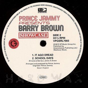 LP— out of stockVP GSRL 7003Reggae / A42Barry Brown: ShowcaseClassic Jammys production, extended mixes with dubs A1 Best Things In Life A2 Conscious Dread A3 Ain’t Gonna Turn Back (feat. Errol Scorcher) B1 It A Go Dread B2 School Days