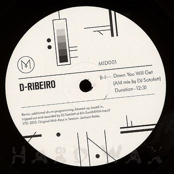 12"— out of stockMidlight 001Label CatalogD-Ribeiro: Down You Will GetSuperb dubbed out and tripping House excursions A1 Down You Will Get A2 Darckula B1 Down You Will Get (AM Mix By DJ Sotofett)
