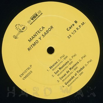LP— out of stockEM 1079 LPOuternationalManteca: Ritmo Y SaborPure percussion rhythm tracks, Japanese reissue A1 Rumbon En Casa De Cando A2 Afro Funky A3 Sabor A Mantecado B1 Abacua B2 Son Montuno B3 Cosa De Manteca B4 Gozando E Timbal
