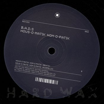 12"— out of stockRekids 082Label CatalogB.A.D.S: Hous-o-matik Hom-o-patikMatt Edwards aka Radio Slave prod. DJ tool big room House cut A1 Hous-o-matik Hom-o-patik B1 Hous-o-matik Hom-o-patik (Beats) B2 Hous-o-matik Hom-o-patik (Acapella)