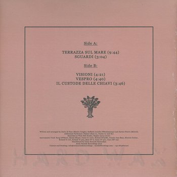LP— out of stockEarly Sounds 012Label CatalogThe Mystic Jungle Tribe: QvisisanaFine spaced out Disco Boogie infused House jams A1 Terrazza Sul Mare A2 Sguardi B1 Visioni B2 Vespro B3 Il Custode Delle Chiavi