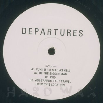 12"— out of stockDepartures 005Label CatalogSzch: Learning To CopeWarm yearning House EP A1 Fukk U I'm Mad As Hell A2 Be The Bigger Man B1 Phd B2 You Cannot Fast Travel From This Location