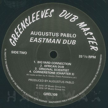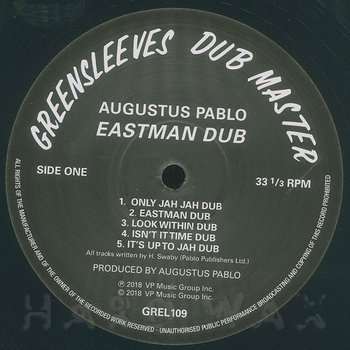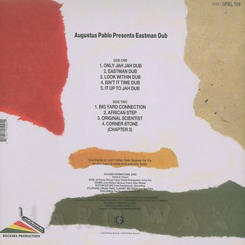 LP— out of stockGreensleeves GREL 109Reggae / A02Augustus Pablo: Eastman DubExcellent Dub counterpart to Tetrack's debut LP A1 Only Jah Jah Dub A2 Eastman Dub A3 Look Within Dub A4 Isn't It Time Dub A5 It Up To Jah Dub B1 Big Yard Connection B2 African Step B3 Original Scientist B4 Corner Stone (Chapter 3)