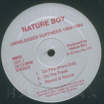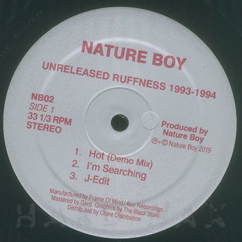 EP— out of stockNature Boy 002Label CatalogNature Boy: Unreleased Ruffness 1993-1994Previously unreleased original Deep House cuts A1 Hot (Demo Mix) A2 I'm Searching A3 J-Edit B1 On Fire (Piano Version) B2 Do The Freak B3 Round Round