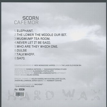 Do LP— out of stockOhm Resistance 52MLabel CatalogScorn: Cafe MorPitch-dark & heavy-as-lead, Mick Harris envisioned Industrial-Dubstep-Drone post-apocalypse 01 Elephant 02 The Lower The Middle Our Bit 03 Mugwump Tea Room 04 Never It Be Said 05 Who Are They Which One 06 Dulse 07 Talk Whiff Feat. Jason Williamson 08 SA70