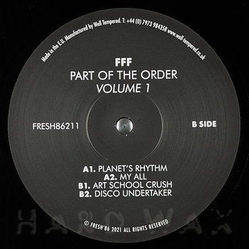 Do LP— out of stockFresh 86 211Label CatalogFFF: Part Of The Order Pt. 1Classy 90s Drum & Bass / Jungle revivalism A1 Planet's Rhythm A2 My All B1 Art School Crush B2 Disco Undertaker C1 Interference C2 J.W's Experiment D1 Below Sea Level D2 Ambush