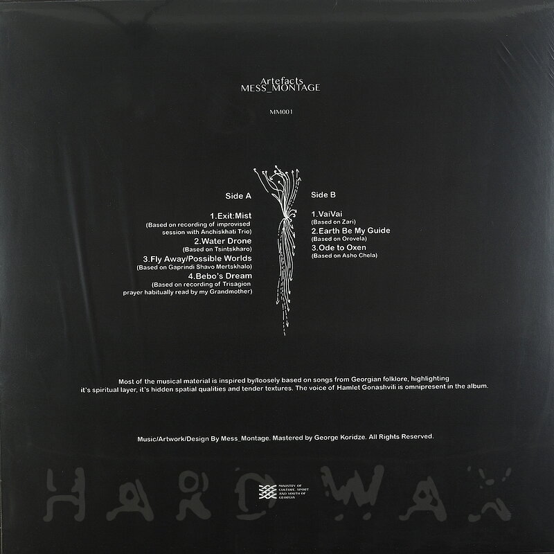 LP—LP € 30Mess Montage 001Label CatalogArtefacts: Mess_MontageWonderful spiritual, ambientish Drones / mostly based on Georgian folklore A1 Exit:Mist A2 Water Drone A3 Fly Away/Possible Worlds A4 Bebo's Dream B1 VaiVai B2 Earth Be My Guide B3 Ode To Oxen