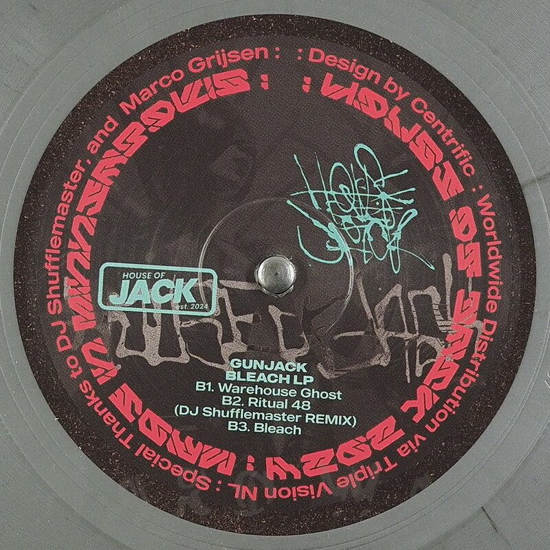 EP— out of stockHouse Of Jack 001Label CatalogGunjack: BleachEffective percussive Techno tools w/ touching DJ Shufflemaster remix A1 Ritual 48 A2 Mfunk89 A3 South Side Acid B1 Warehouse Ghost B2 Ritual 48 (DJ Shufflemaster Remix) B3 Bleach