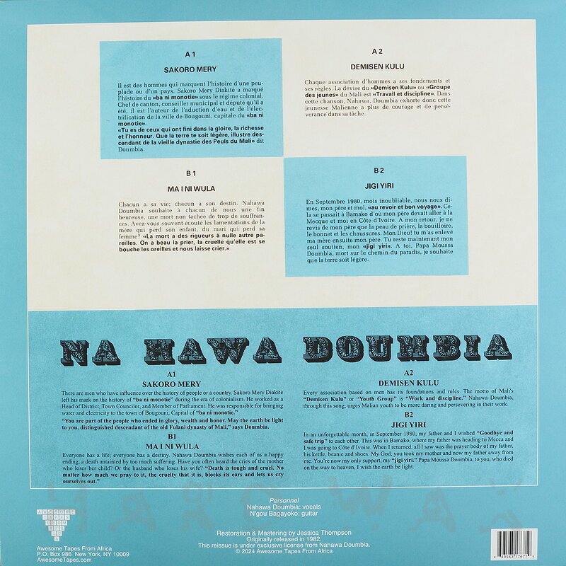 "Released on LP in 1982 and unavailable outside Mali until now, Vol. 2 is an intimate yet powerful document of the early efforts of one of Mali’s most enduring voices. Four decades of worldwide acclaim later, Doumbia is still touring the world blowing minds with her achingly emphatic singing backed by her partner guitarist N’gou Bagayoko. Vol. 2 is stark in its instrumentation—simply featuring voice and acoustic guitar—but massive in its sonic impact.[...]"