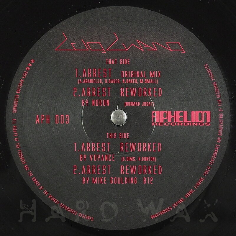 12"—12" € 18Aphelion 003Label CatalogZugzwang: Arrest90s IDM / Ambient Techno classic reissued w/ additional reworks A1 Arrest A2 Arrest (Nuron Remix) B1 Arrest (Voyance Remix) B2 Arrest (Mike Golding Remix)
