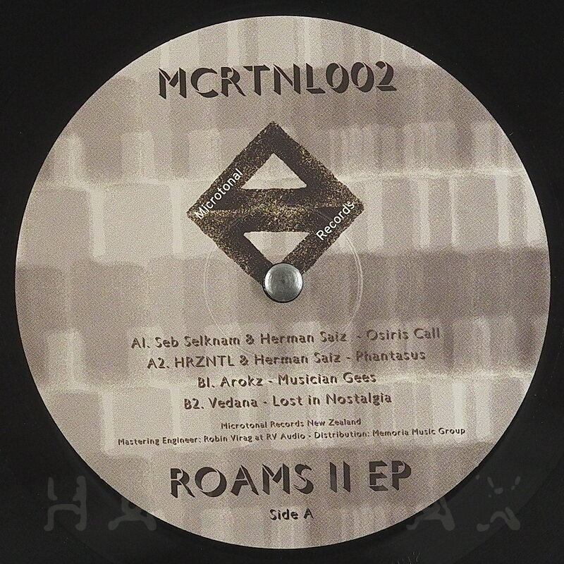 12"—12" € 17.5Microtonal 002Label CatalogVarious Artists: ROAMS IIDubby, playful deep House tunes A1 Seb Selknam & Herman Saiz: Osiris Call A2 HRZNTL & Herman Saiz: Phantasus B1 Arokz: Musical Gees B2 Vedanā: Lost in Nostalgia